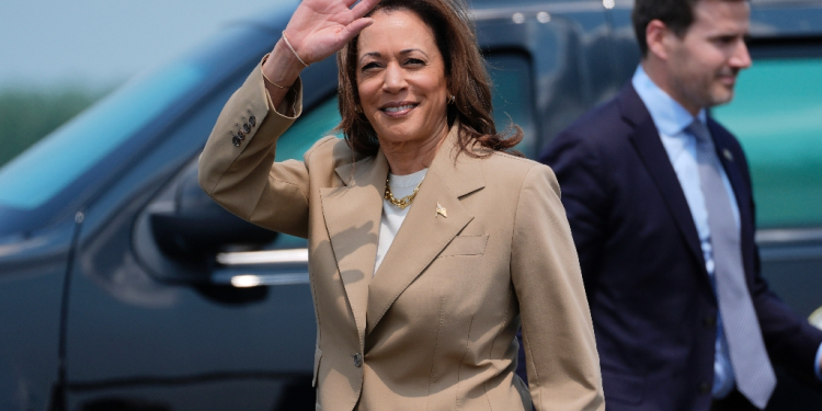 US Vice President Kamala Harris arrives in Westfield, Massachusetts on July 27, 2024 ahead of a campaign fundraising event / ©AFP