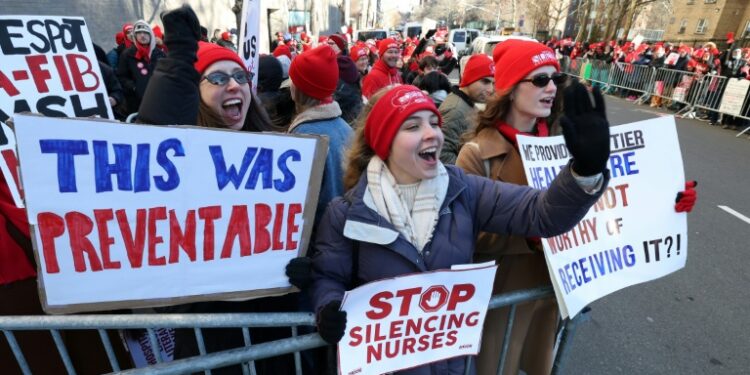 New York (AFP) – Some 15,000 nurses went on strike Monday in New York City at three large private hospital groups over pay and conditions. Officials declared a state of emergency over the work stoppage, which the New York State Nurses Association (NYSNA) said on its website came after months of bargaining for a new contract reached a deadlock. The association claims it is the largest strike by nurses in the city’s history.