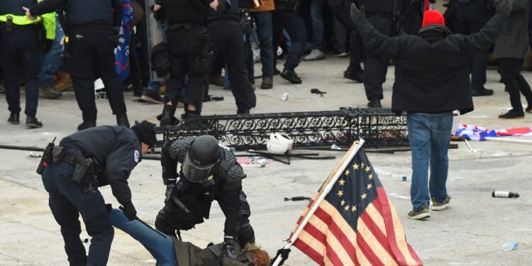 An earlier Justice Department statement said Pollock had assaulted several police officers, pulling one down a set of steps, kneeing another and punching a third in the neck.It said Hutchinson had also punched and kicked several officers, and that Olivia Pollock — Jonathan Pollock’s sister, according to local media — had elbowed an officer and tried to grab a baton from another.Nearly 1,300 people have so far been charged in relation to the Capitol riot, which prosecutors have called an insurrection aimed at keeping Trump in the White House.Most of them face charges of illegally entering the Capitol or causing property damage, but some 350 have been charged with assaulting law enforcement officers or resisting arrest.Others, including members of the far-right Proud Boys and Oath Keepers, have been convicted of the more serious charge of seditious conspiracy.Trump, who is seeking a second term in the Oval Office, himself is facing felony charges over his alleged efforts to overturn the results of the 2020 presidential election and his role in the January 6, 2021 assault.He has never acknowledged his defeat to Democrat Joe Biden and vigorously denies having incited his supporters to attack the seat of the US Congress.In February, the Supreme Court will hear a case on whether Trump is eligible to seek election to a second term, given his alleged role in the assault.