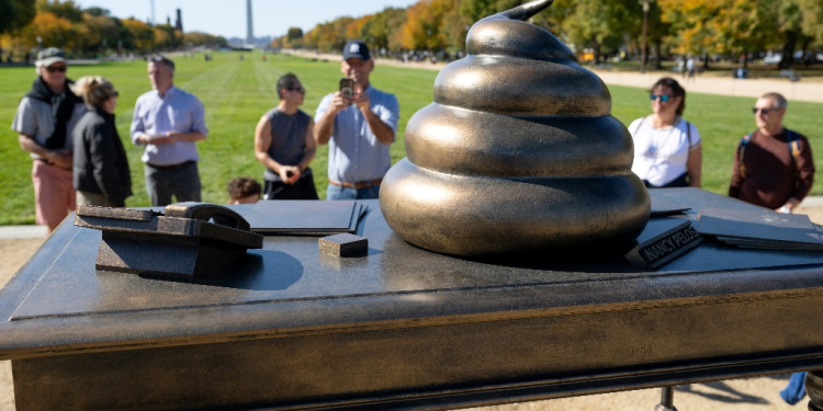 A strange new monument was installed in Washington: a replica of former House Speaker Nancy Pelosi’s desk, with a large, emoji-style turd sitting atop it. A plaque sarcastically states that it “honors the brave men and women who broke into the United States Capitol on January 6, 2021, to loot, urinate and defecate throughout those hallowed halls.” Amid the pro-Trump riot, in which supporters sought to overturn his 2020 election loss to President Joe Biden, some reportedly spread their feces throughout Congress, with one claiming to have defecated on Pelosi’s desk. The installation will be removed after a week.