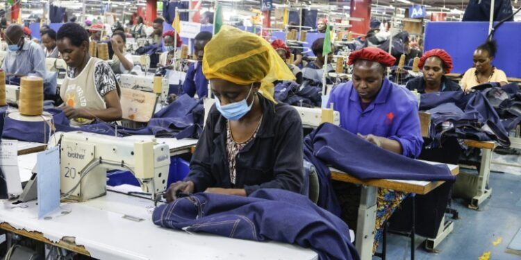 Workers make jeans at the United Aryan textile factory in Nairobi. ©AFP