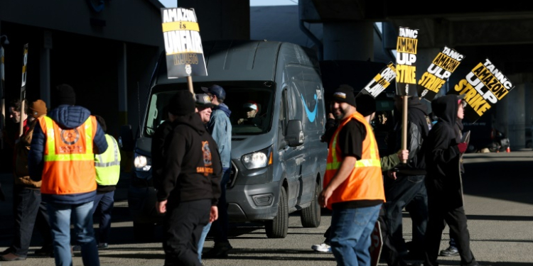 The Teamsters union on Thursday launched a strike targeting seven Amazon facilities spaced around the United States. Union officials said the stoppage continued Friday at the same locales. “When they (Amazon) come to the table, I guess that’s when we’ll stop,” Tony Rosciglione, treasurer of Teamsters Local 804 in New York, told AFP in a phone interview from a picket line in New York City. The union, pointing to headway made at Amazon locales by organizing drives, had set a December 15 deadline for the online retailer to enter into contract negotiations.