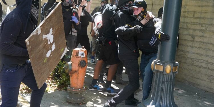 Antifa-aligned activists, often masked and dressed entirely in black, protest against racism, far-right values, and what they consider fascism, and say violent tactics are sometimes justified in self-defense. Such protesters have been increasingly involved in direct confrontations with right-wing groups since Trump’s first election to the White House in 2016. During Trump’s January 20, 2017 inauguration, scores of black-clad, mask-wearing Antifa followers and other protestors smashed windows in Washington. In August that year, they were at the vanguard of counter-demonstrations when white supremacists and neo-Nazis marched in Charlottesville, Virginia, and engaged in physical fights with the rightists.