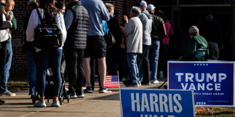 (AFP) – Across the US battleground states, voters voiced anxiety about Tuesday’s election finale, divided — like the country at large — by starkly different visions of the future. The solemn nature of the voting process provided a contrast to the hyper-charged campaign cycle, marked by Kamala Harris’s late entry, two assassination attempts on Donald Trump, and often vicious rhetoric. Millions stood in line patiently, sometimes displaying their preferences on T-shirts or hats, or simply carrying American flags.