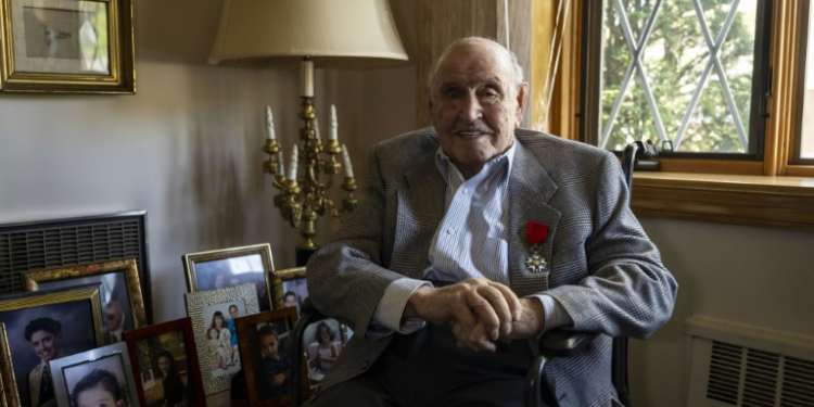 US army veteran Jack Hausman, 101, was honored in his home in New York on April 26, 2024 . ©AFP