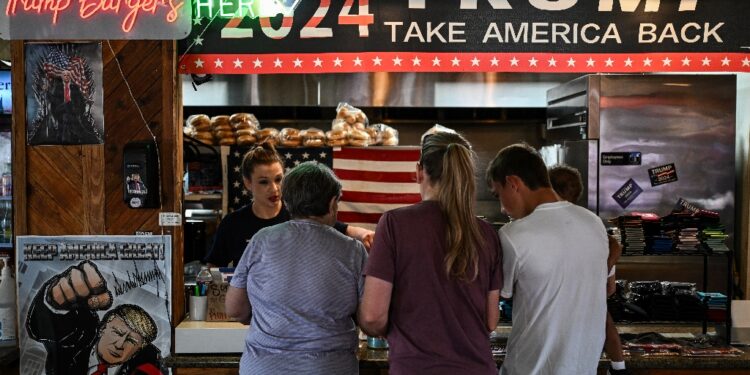 Diners in Bellville, Texas place their orders at the Trump Burger restaurant, where images of US President Donald Trump abound / ©AFP