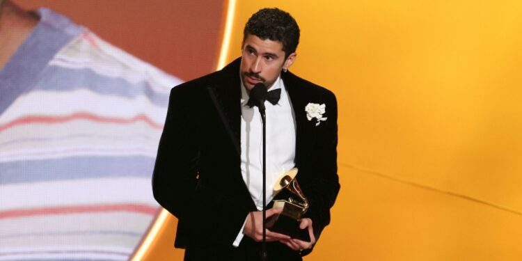 New York (AFP) – A musical deep dive into colonial legacy, an epic concert residency, an oeuvre of smash albums with remarkable range: no one is doing it quite like Bad Bunny. And on Sunday, the Puerto Rican phenom made history, winning the coveted Grammy for Album of the Year — and becoming the first artist who performs in Spanish to ever claim the prize. He came out swinging at President Donald Trump’s sweeping immigration crackdown, earning cheers when he told the Grammys audience: “ICE out.”