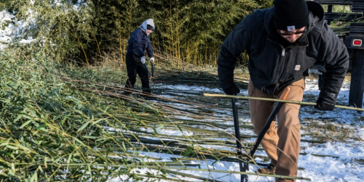 Front Royal (United States) (AFP) – On a snow-blanketed field in Virginia, a handful of workers were silent but for the groan of a chainsaw chopping through bamboo — a delicacy for their furry clients down the road in the US capital of Washington. The team, bundled up for the cold, then stuffed up to 700 bamboo stalks into a pickup truck to be driven 70 miles (110 kilometers) to the Smithsonian’s National Zoo to feed, among others, its newly arrived pandas. Bao Li, a male, and female Qing Bao, landed in the United States from China in October as part of a decade-long breeding and research agreement.