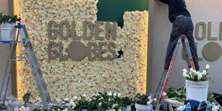 Guests began to make their way down the red carpet at the Beverly Hilton Hotel ahead of the gala — the kick-off for Hollywood’s prize-giving season, which culminates with the Oscars in March.