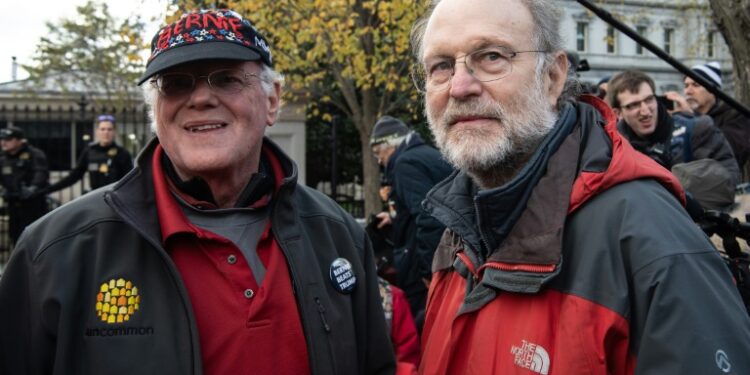 Ben Cohen (L) and Jerry Greenfield, the founders of Ben and Jerry's ice cream, stand outside the White House during a climate rally in Washington, DC on November 8, 2019. ©AFP