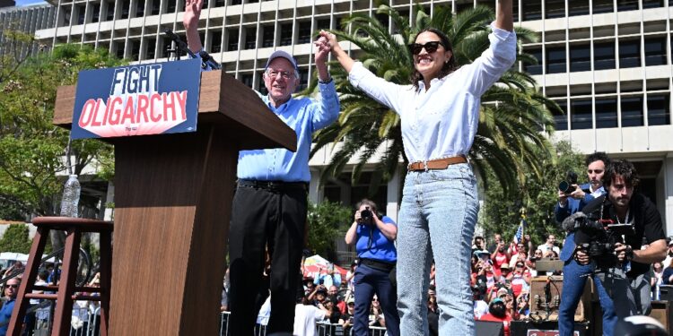 (AFP) – Bernie Sanders is emerging as one of the most vocal opponents to US President Donald Trump, with the 83-year-old senator drawing tens of thousands of people to his “fighting oligarchy” rallies around the country. Supporters packed the Gloria Molina Grand Park in Los Angeles on Saturday as guests including politicians, union representatives, and musical acts took to the stage before speeches by Sanders and Democrat representative Alexandria Ocasio-Cortez.