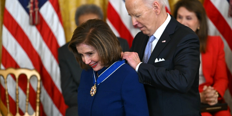 US President Joe Biden presents the Presidential Medal of Freedom to former House speaker Nancy Pelosi / ©AFP