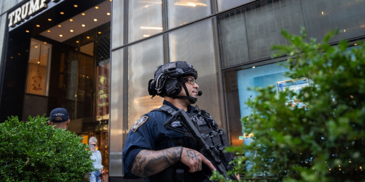 Law enforcement stand guard outside of Trump Tower in New York City after the rally shooting / ©AFP