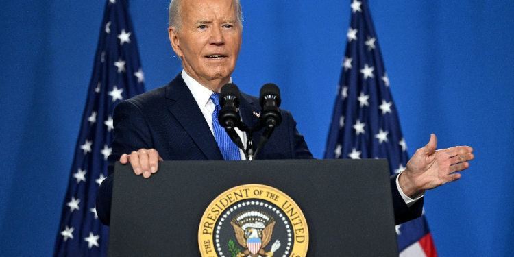 US President Joe Biden gestures as he speaks during a press conference on July 11, 2024 / ©AFP