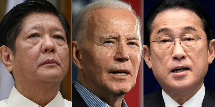 Philippines' President Ferdinand Marcos Jr. (L), US President Joe Biden (C) and Japan's Prime Minister Fumio Kishida (R) / ©AFP