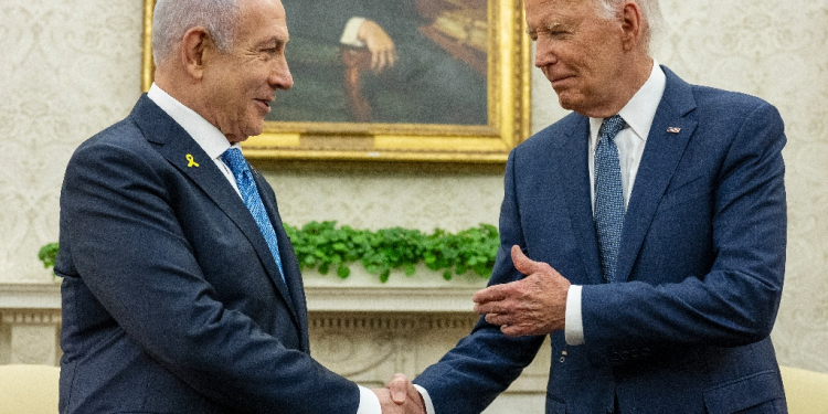 (AFP) – President Joe Biden pushed Israeli Prime Minister Benjamin Netanyahu to quickly reach a Gaza ceasefire Thursday, with a friendly handshake masking tense ties and questions over the outgoing US leader’s relevance.
