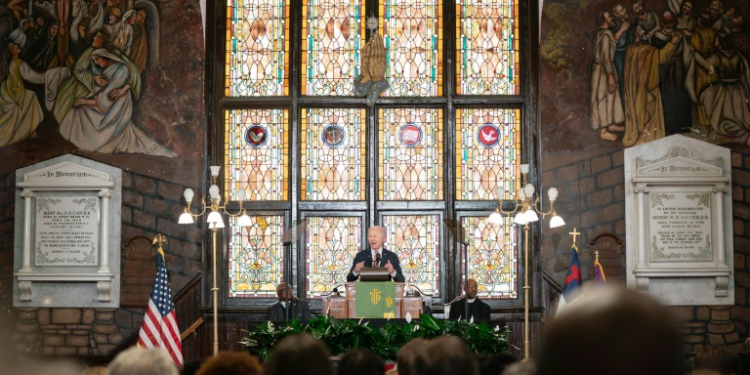 President Joe Biden speaks at Mother Emanuel AME Church in Charleston, South Carolina in January 2024. ©AFP