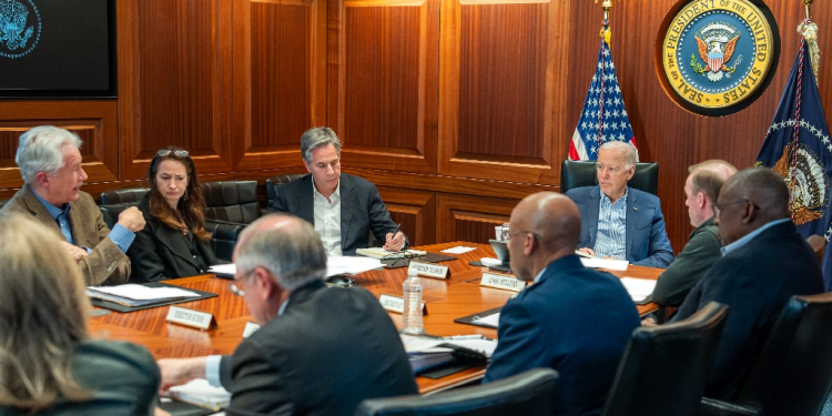 “I just met with my national security team for an update on Iran’s attacks against Israel. Our commitment to Israel’s security against threats from Iran and its proxies is ironclad,” Biden said on X. He posted a picture of the meeting in the wood-paneled White House Situation Room with officials including Defense Secretary Lloyd Austin, Secretary of State Antony Blinken and CIA Director Bill Burns.