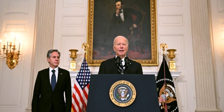 Biden stressed that Israel — which the United States has supplied with billions of dollars of arms — has “a right to defend itself” after Iran-backed Hamas launched air, sea and land strikes.