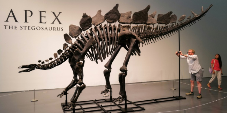 The skeleton, nicknamed Apex, is estimated to be 150 million years old and is the largest stegosaurus ever found, according to the auction house. ©AFP