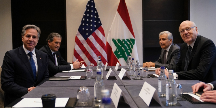 (AFP) – US Secretary of State Antony Blinken met Friday with Lebanon’s prime minister to discuss Israel’s strikes on the country as Washington presses the Beirut government to take charge against Hezbollah. Blinken, on his way back from a Middle East tour, met in London with Prime Minister Najib Mikati, who came in from a conference on Lebanon in Paris the day before. The two smiled before the cameras but made no remarks.