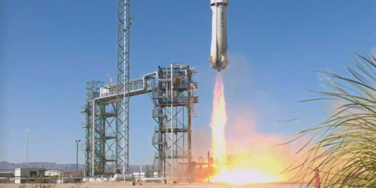 It was the first crewed launch for the enterprise owned and founded by Amazon billionaire Jeff Bezos since a rocket mishap in 2022 left rival Virgin Galactic as the sole operator in the fledgling suborbital tourism market.