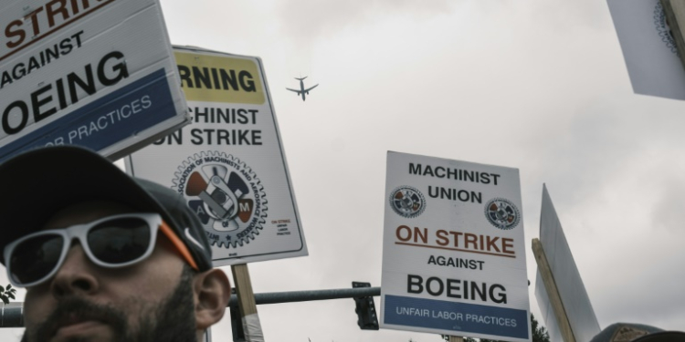New York (AFP) – Boeing proposed lifting hourly wages for striking workers by 30 percent on Monday, sweetening its initial offer in an effort to end a 10-day stoppage that shuttered Seattle-area plants. The aviation giant gave workers until Friday at midnight to ratify its “best and final offer.” The union, the International Association of Machinists and Aerospace Workers, said it was reviewing the proposal.