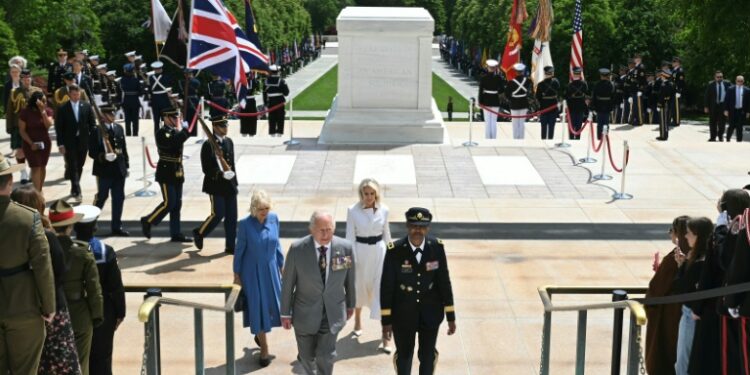 Washington (United States) (AFP) – King Charles III paid respects to fallen US troops at a military cemetery on Thursday, the final day of a state visit aimed at healing ties between Britain and the United States strained by the war in Iran. By all accounts, the four-day visit has been a success, with President Donald Trump serving as solicitous host-in-chief who kicked off the monarch’s stay with a pomp-filled welcome and lavish white-tie banquet at the White House.