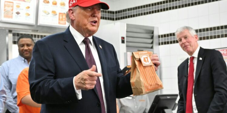 Palm Beach (United States) (AFP) – On a visit to Texas on Friday, US President Donald Trump gave a raucous speech on the economy and then stopped off at a fast food joint. “Hamburgers for everyone!” Trump declared to cheering customers at the Whataburger restaurant in Corpus Christi, before the 47th president left clutching a bag with the order number 47. Nine hours later, in the dead of night, Trump announced from his Mar-a-Lago resort in Florida that he had ordered the start of a major attack against Iran.