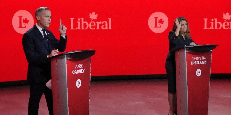Four candidates qualified to run in the Liberal leadership race but only two are seen as viable contenders. The front-runner is Mark Carney, who led the Bank of Canada before becoming the first non-Briton to serve as governor of the Bank of England. His main challenger is Chrystia Freeland, Trudeau’s former finance minister who dramatically broke with the prime minister in December, issuing a scathing resignation letter that partly pushed him to resign. Both Carney and Freeland have anchored their campaigns on the Trump threat. Carney, who has never held elected office, has sought to remind Liberal party voters that he led Canada’s central bank through the 2008-2009 financial crisis and steered the Bank of England through the turbulence that followed the Brexit vote. “Canada faces one of the most serious crises in our history. I know how to manage crises and I know how to build strong economies,” he said during a leadership debate.