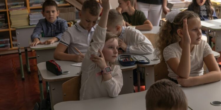 More than three million children attend school in Ukraine, nearly 900,000 of whom are studying remotely, according to the presidency.