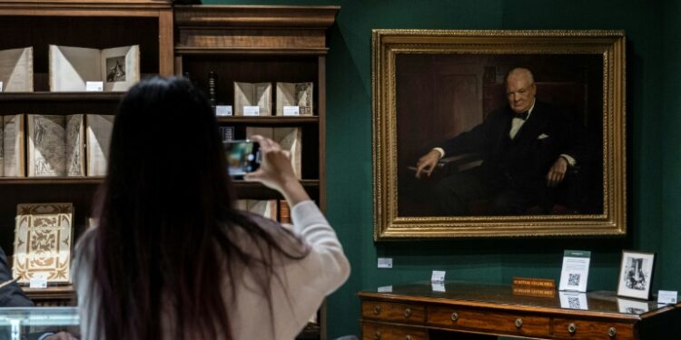 New York (AFP) – A treasure trove of Winston Churchill’s possessions including his desk, a holiday painting from a trip to Morocco, and a copy of his first book go on sale in New York on Thursday.