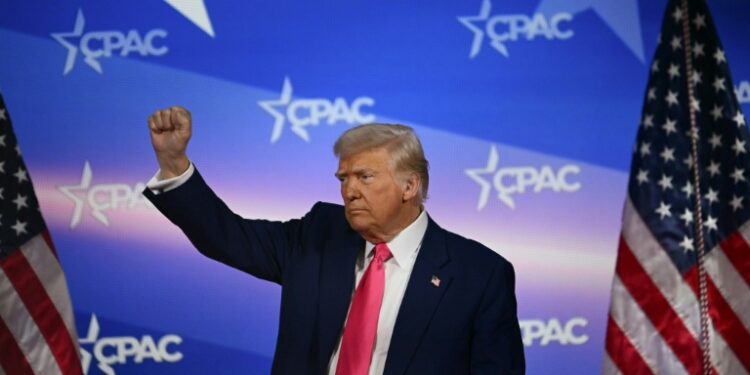(AFP) – Greeted by wild applause and chants of “USA! USA!” from a packed hall, US President Donald Trump received a triumphant welcome on Saturday at the annual conservative convention near Washington. In his uniform blue suit, the US leader took the stage facing a sea of red hats bearing the slogan of his “Make America Great Again” (MAGA) movement at the Conservative Political Action Conference (CPAC), a yearly assembly of top Republicans in suburban Maryland. From the outset of his nearly 1.5 hour-long speech, the Republican launched into attacks on the “globalists” and “a sinister group of radical left Marxists, warmongers and corrupt special interests,” who, according to him, governed the country before his return to power.
