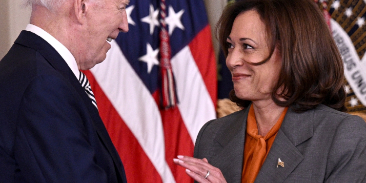 US President Joe Biden (left) gave his swift endorsement to Vice President Kamala Harris / ©AFP