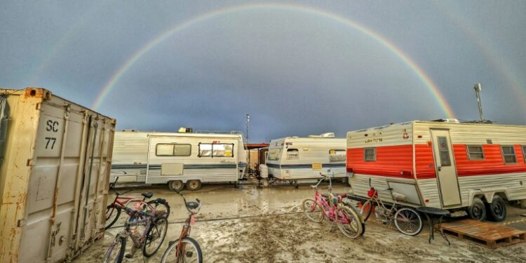 Black Rock City (United States) (AFP) – Tens of thousands of festivalgoers were stranded Sunday in deep mud in the Nevada desert after rain turned the annual Burning Man gathering into a quagmire, with police investigating one death.