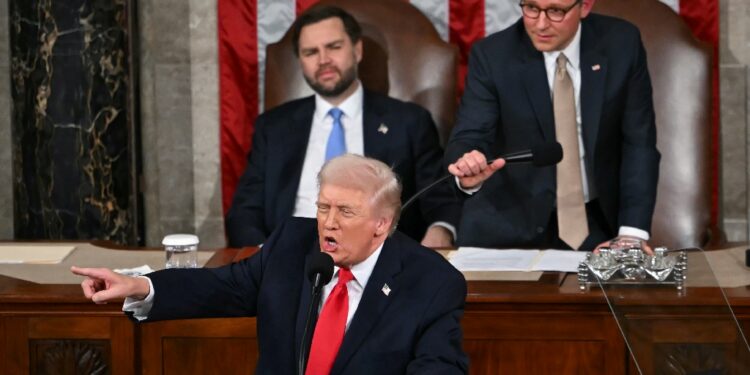 (AFP) – If Donald Trump was worried about a hostile reception over his breakneck remaking of presidential norms, he did not show it — striding in six minutes late, with the unhurried confidence of a man who knew the evening belonged to him. Republicans rose in successive waves, while many Democrats remained seated with fixed expressions. Only later, when the US men’s Olympic ice hockey team was introduced, would the entire chamber rise together.