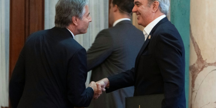 Santo Domingo (AFP) – Dominican Republic President Luis Abinader, who has championed a tough line on Haiti, told the United States on Friday that he was open to normalizing relations with its impoverished Caribbean neighbor as security improves. Meeting US Secretary of State Antony Blinken, who was back from a rare visit to Haiti, the popular Dominican leader promised to look both at restoring political ties and reopening airspace closed for months to flights to and from Haiti.