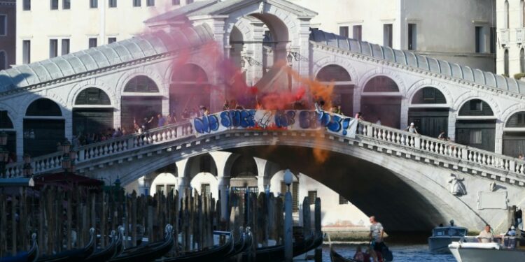 Protesters later unfurled a large “No place for Bezos” banner and lit flares above the famous Rialto Bridge spanning the Grand Canal. Matteo Battistuta, a 20-year-old student, said he wanted to send the message that “Venice is fighting back, it’s not a dead city, it acts in its own interest before tourism’s.” “We believe Venice can still be a place worth living in,” he added.