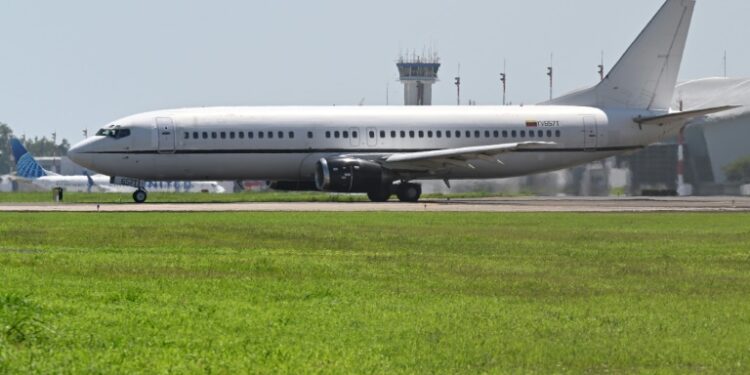 A plane taxis as it prepares to bring Venezuelan migrants home from a notorious prison in El Salvador, where they were sent by US President Donald Trump's administration. ©AFP