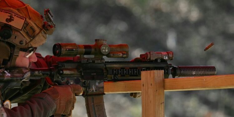 US Vice President JD Vance fires an M27 rifle at the Marine Corps Base in Quantico, Virginia. ©AFP