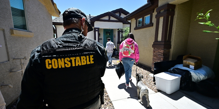 (AFP) – Wearing a bulletproof vest and with a gun strapped to his waist, Constable Lennie McCloskey opens his folder and looks through the court orders: eleven evictions to be carried out today. “It’s a slow day” in Maricopa County, Arizona, he says.