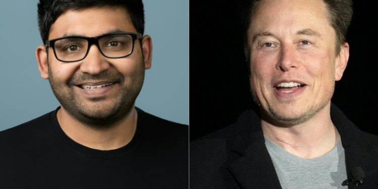 Former Twitter CEO Parag Agrawal (L) is among those suing new owner Elon Musk (R). ©AFP