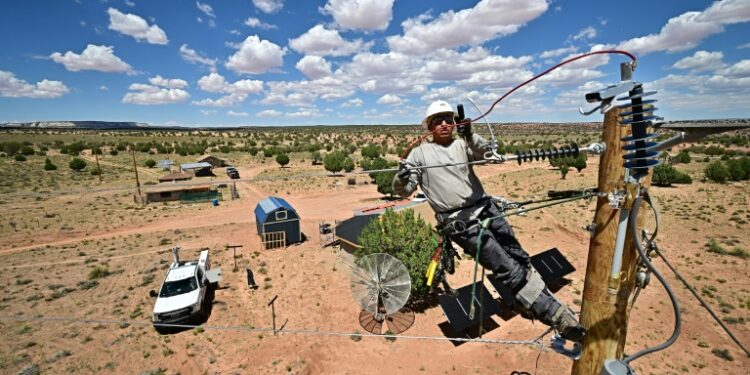 Tonalea (United States) (AFP) – Workmen plant electricity poles in the rust-orange earth of the Navajo Nation and run cables to Christine Shorty’s house — finally giving her power against the searing Arizona desert heat. It will be a luxury in the vast Native American reservation, the largest in the United States, where more than 10,000 families are still without electricity and therefore air conditioning.