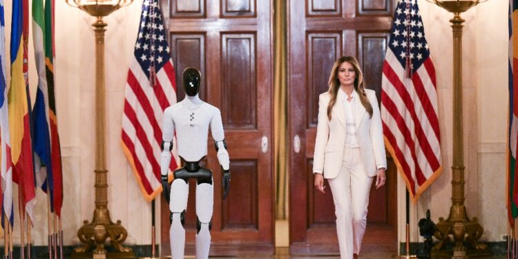 (AFP) – US First Lady Melania Trump brought a surprise guest to a White House event on Wednesday — a walking, talking, humanoid robot. Instead of husband President Donald Trump at her side, it was the “Figure 3” android that accompanied Melania down the famous red carpet. The 55-year-old Melania, whose signature focus as first lady is on AI and digital spaces, was hosting a summit on empowering children with educational technology.