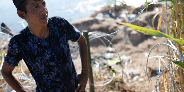 Clothes and bags dot the island that lies halfway between the Mexican city of Piedras Negras and Eagle Pass in Texas, cast off by people who stopped to rest after their first dash into the current.
