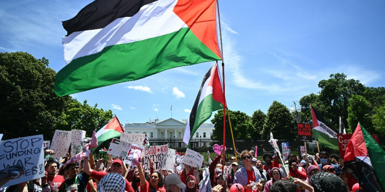 (AFP) – Thousands of Gaza war protesters held a “red line” rally near the White House on Saturday, voicing anger at what they said is US President Joe Biden’s tolerance of Israel’s bloody military campaign against Hamas.