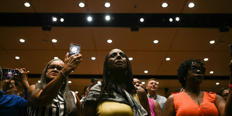 “With Kamala Harris, we are very hopeful and we think she’s going to do it,” said Kimberly Pennamon, 53. “Prior to the announcement of her candidacy, people were really feeling disengaged,” she told AFP. “The energy is so high now.” The mostly African-American crowd was squeezed onto the benches of the school gymnasium in Prince George’s County, a Democratic stronghold in Maryland where more than 89 percent voted for Biden in 2020.