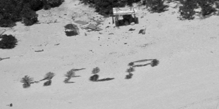 Los Angeles (AFP) – Sometimes all you have to do is ask for “HELP”: That’s what three men stranded on a deserted Pacific island learned earlier this week, writing the message in palm fronds which were spotted by US rescuers.