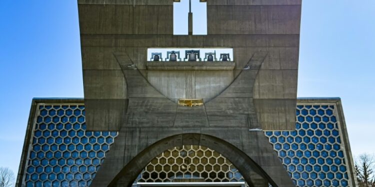 Collegeville (United States) (AFP) – On a snowy prairie in Minnesota stands a monastery like no other. A concrete trapezoid banner encasing a bell tower looms over a giant, beehive-shaped front window composed of hundreds of gently shimmering hexagons. For half a century, the existence of this modernist masterpiece has been mainly known to the Benedictine monks who worship there, and the hordes of architects who make pilgrimages to Saint John’s Abbey Church each summer. But these days, it is finding new fame as the basis for “The Brutalist,” the epic drama about an immigrant architect, haunted by the Holocaust, that is a favorite to win best picture at the Oscars.