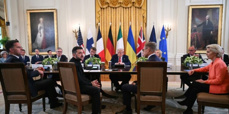 Brussels (Belgium) (AFP) – A careful selection of cast and roles and a clear strategy to avoid deadlocks. European leaders’ charm offensive on Donald Trump to foster Ukraine’s cause this week was hastily arranged but followed a scripted plan, say European sources. France’s Emmanuel Macron and Britain’s Keir Starmer were among seven European leaders who accompanied Ukraine’s Volodymyr Zelensky to the White House on Monday for high-stakes talks with the US President.
